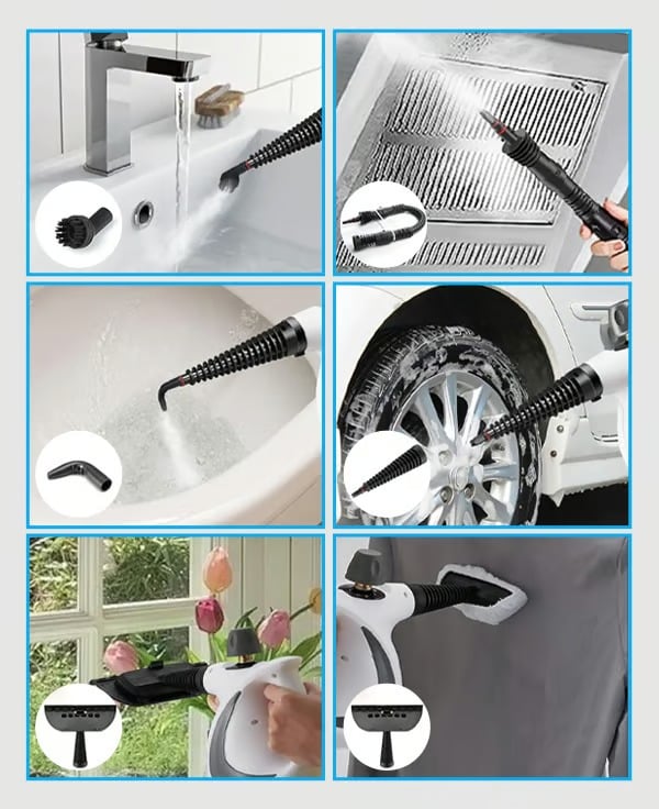 Dieser Dampfreiniger ist vielseitig einsetzbar und kann auf einer Vielzahl von Oberflächen verwendet werden, z. B. auf Waschbecken, Herden, Arbeitsplatten, Fliesen, Fenstern, Matratzen, Stoffen, Spielzeug und mehr. Er ist sowohl für harte als auch für weiche Oberflächen geeignet.