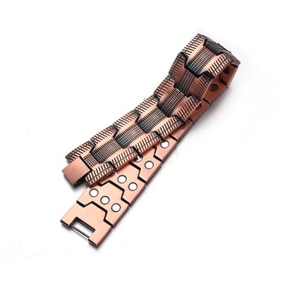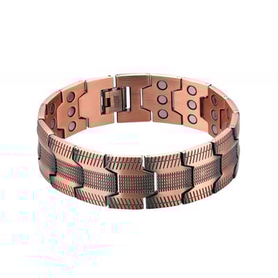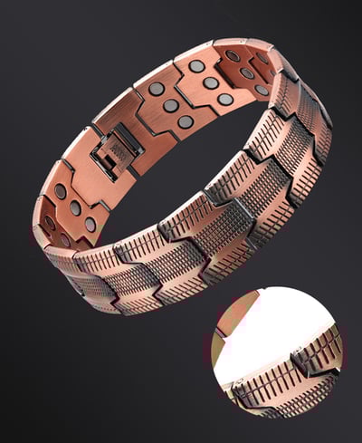 Das Armband kombiniert die natürlichen Eigenschaften von reinem Kupfer mit starken dreireihigen Neodym-Magneten, die die Durchblutung unterstützen, Entspannung fördern und einen aktiven, gesunden Lebensstil ergänzen — alles, während es Ihrem Look einen stilvollen Touch verleiht.