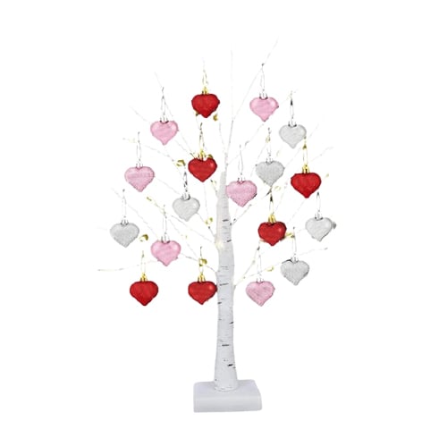 KATALOG > Valentinstagsgeschenk > LED-Tischbaum aus Birkenholz mit 18 Herzornamenten