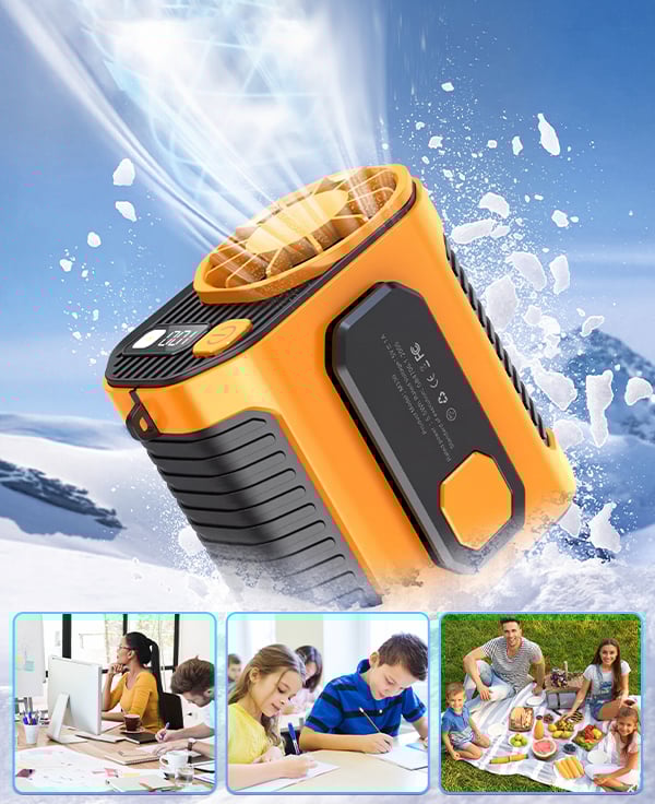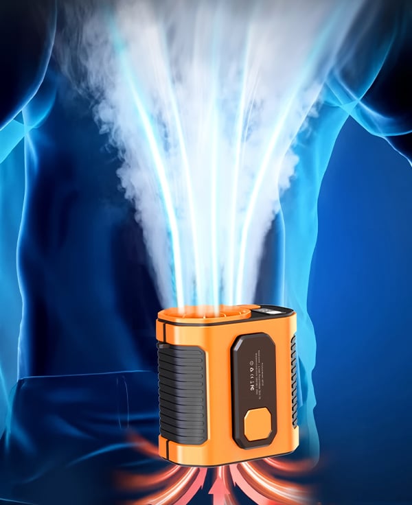 Das am Gürtel befestigte, freihändige Design ermöglicht es Ihnen, beim Arbeiten, Sport oder Freizeitaktivitäten cool zu bleiben – ganz ohne Einschränkungen.