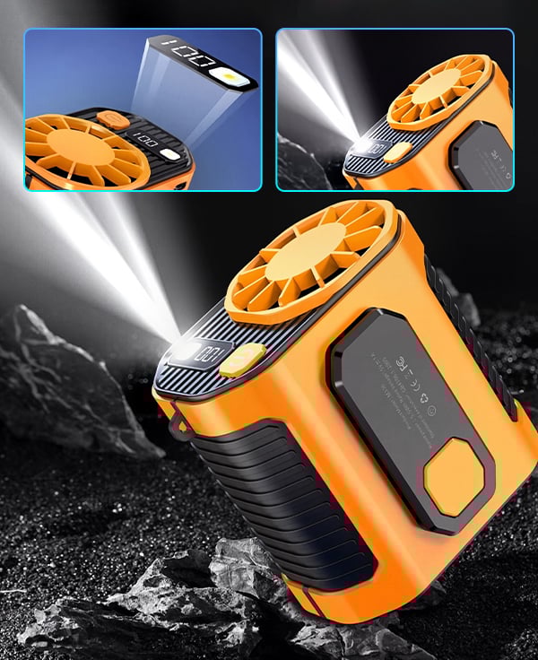 Der Ventilator verfügt über ein klares digitales Display, das die aktuelle Lüftergeschwindigkeit und die verbleibende Akkulaufzeit in Echtzeit anzeigt. Zudem ist eine helle LED-Taschenlampe integriert, was die Praxistauglichkeit und Vielseitigkeit erhöht.